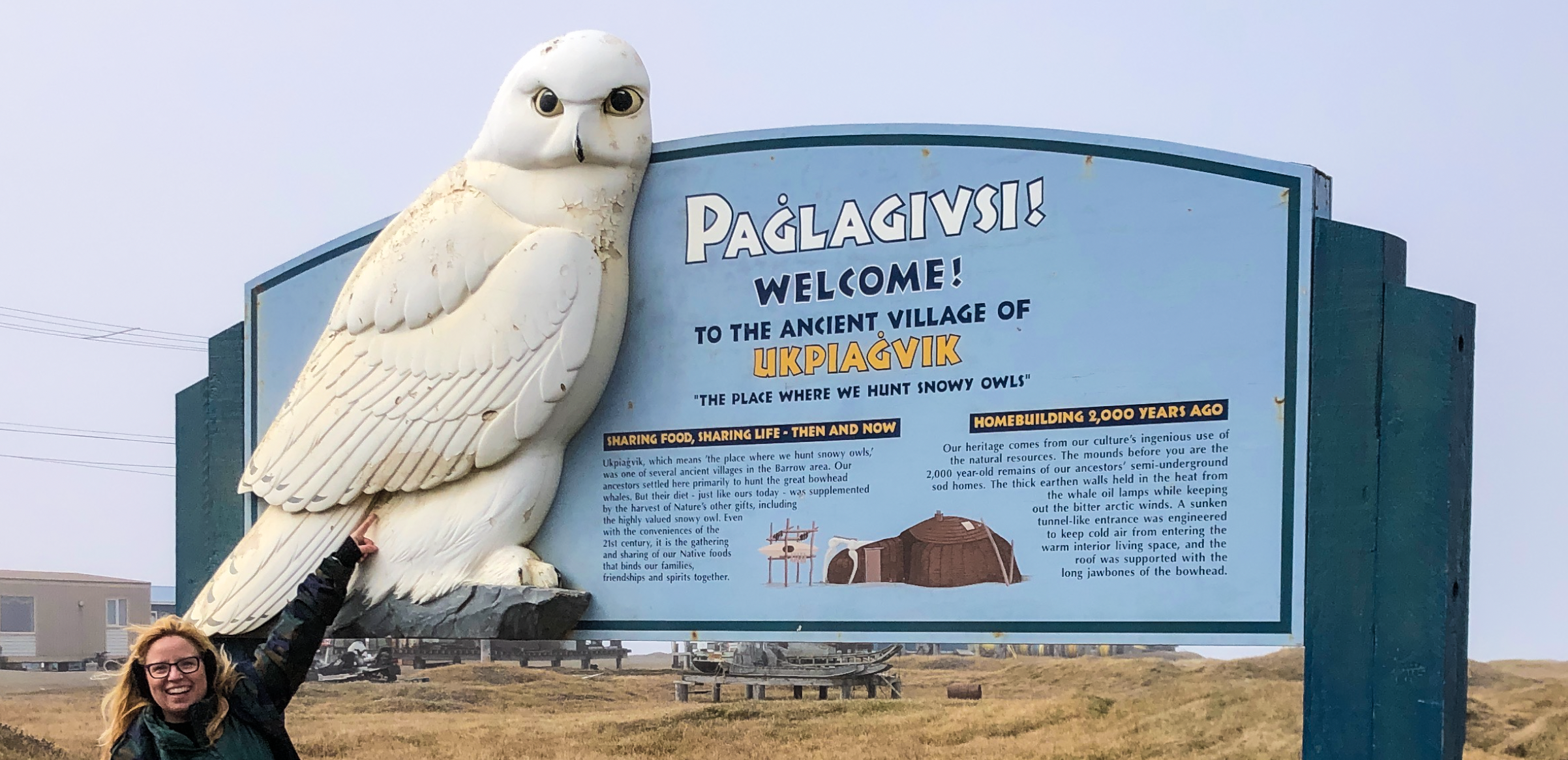 What some people in the US know as the town of Barrow, AK is now called “Utqiagvik” which is a recent spelling of the town’s ancient name “Ukpiagvik.” According to the town sign the name means, “the place where we hunt snowy owls.” I chuckled when I read that. This sign made me think of how in the winter when snowy owls arrive, the “Owl Police” get riled up about how close people get to snowy owls. What would they think of the traditional town name?